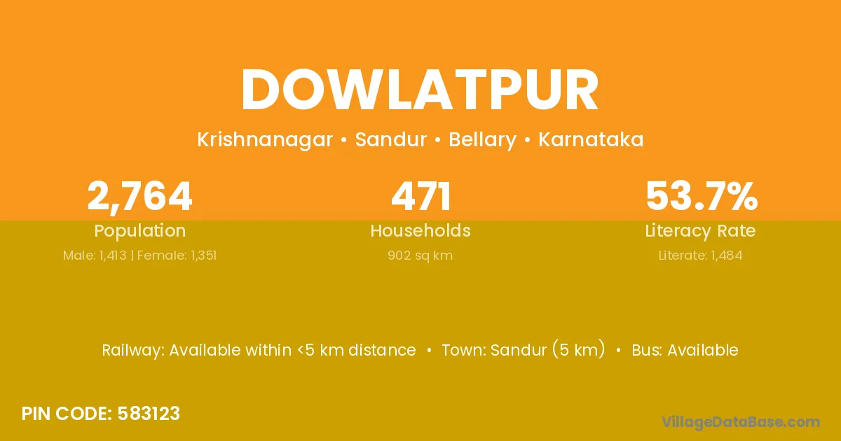 Sandur (5 km) is the nearest town to Dowlatpur village for major economic activities and is located approximately 5 km away.
