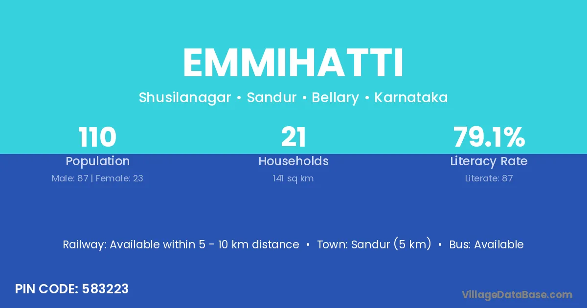 Sandur (5 km) is the nearest town to Emmihatti village for major economic activities and is located approximately 5 km away.