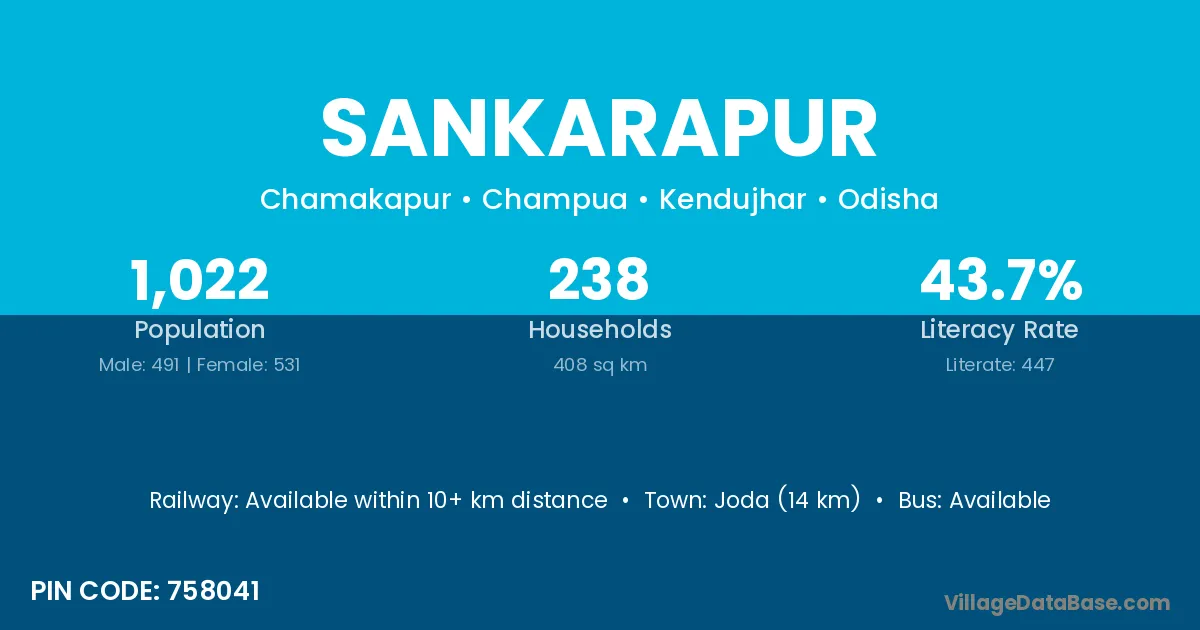Sankarapur village has a total population of 37 people, of which 31 are males and 6 are females.