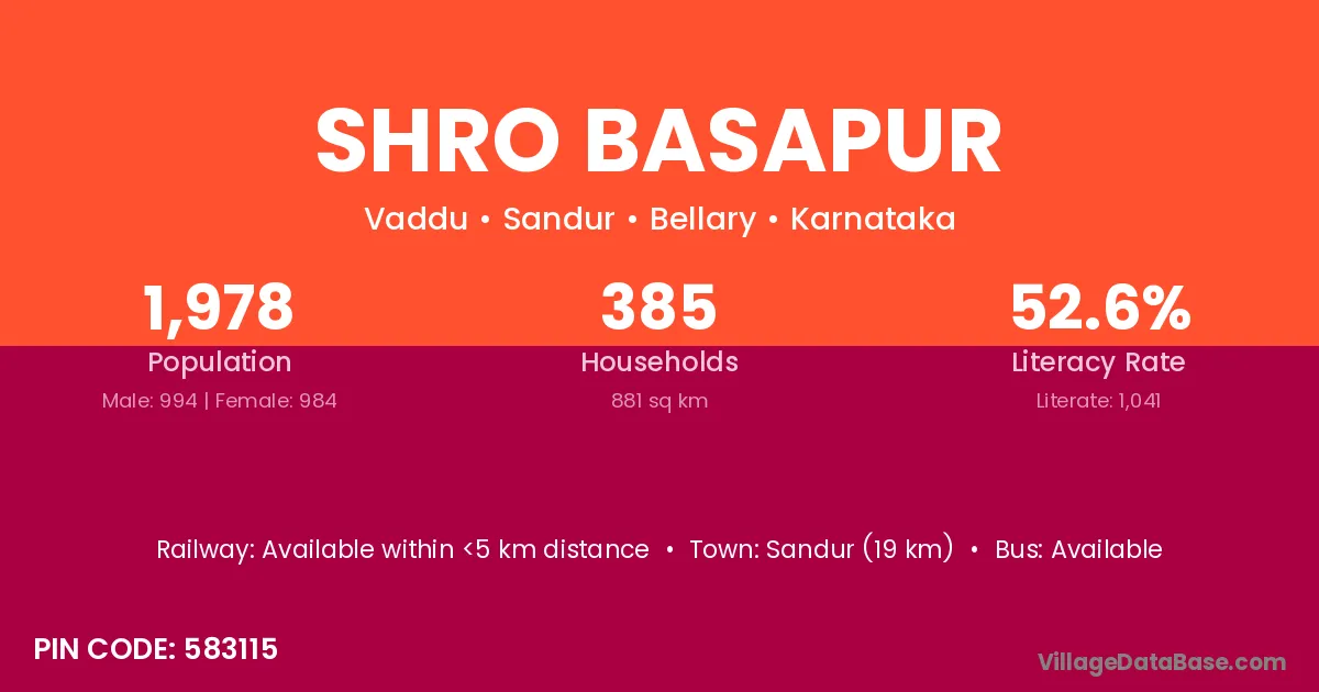 Shro Basapur village has a total population of 1,978 people, of which 994 are males and 984 are females.