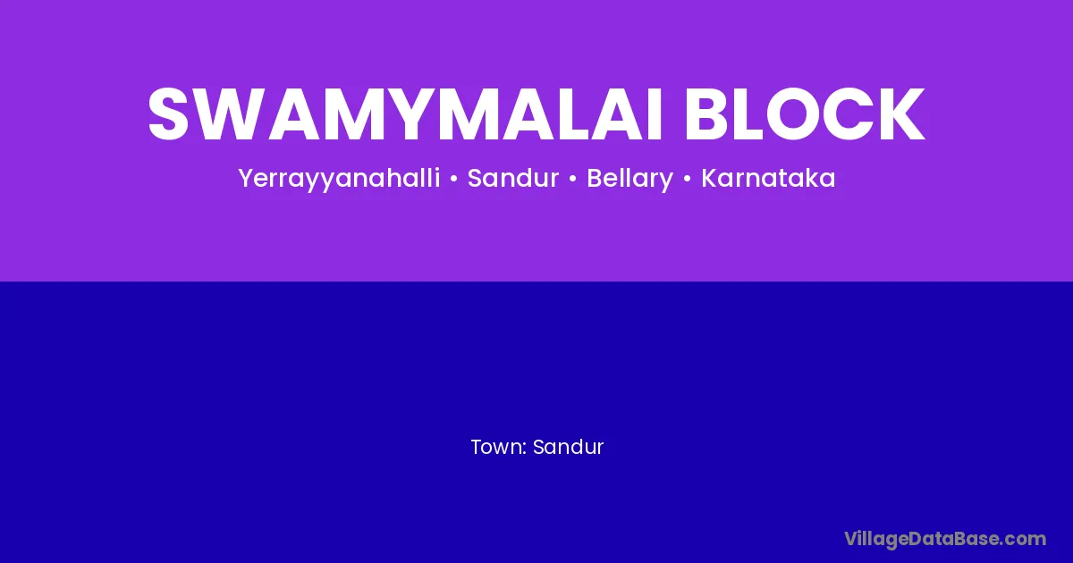 Swamymalai Block village is located in the Sandur Taluka of the Bellary district in Karnataka .
