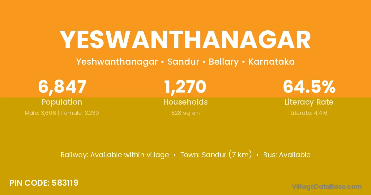 Sandur (7 km) is the nearest town to Yeswanthanagar village for major economic activities and is located approximately 7 km away.
