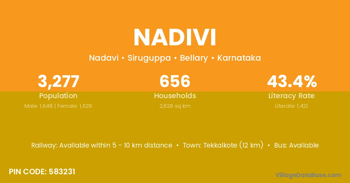 Tekkalkote (12 km) is the nearest town to Nadivi village for major economic activities and is located approximately 12 km away.