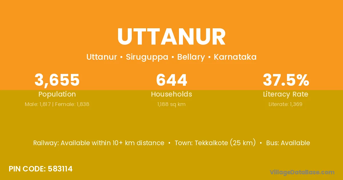 Tekkalkote (25 km) is the nearest town to Uttanur village for major economic activities and is located approximately 25 km away.