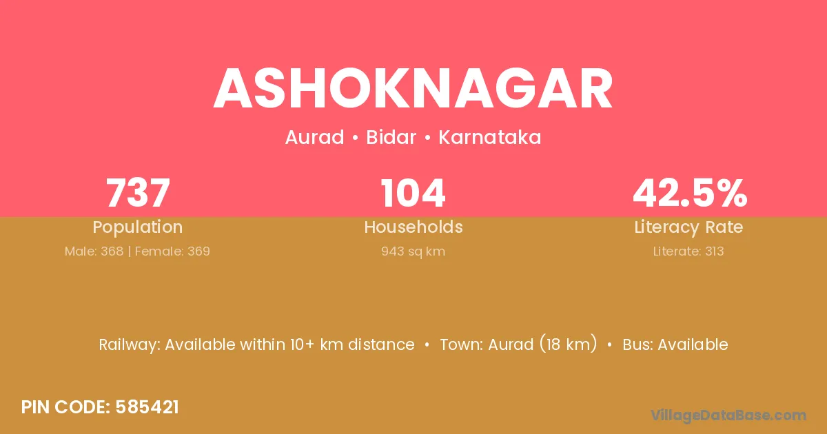 Aurad (18 km) is the nearest town to Ashoknagar village for major economic activities and is located approximately 18 km away.