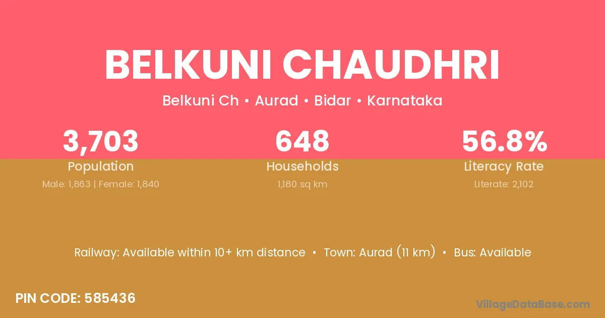Aurad (11 km) is the nearest town to Belkuni Chaudhri village for major economic activities and is located approximately 11 km away.