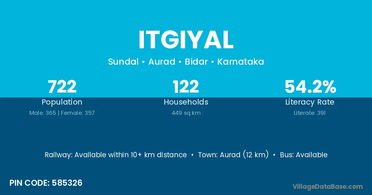 Aurad (12 km) is the nearest town to Itgiyal village for major economic activities and is located approximately 12 km away.