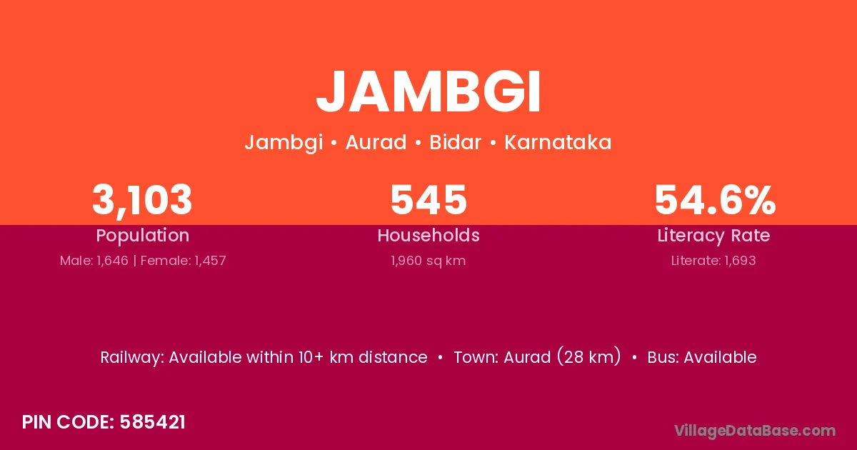 Aurad (28 km) is the nearest town to Jambgi village for major economic activities and is located approximately 28 km away.