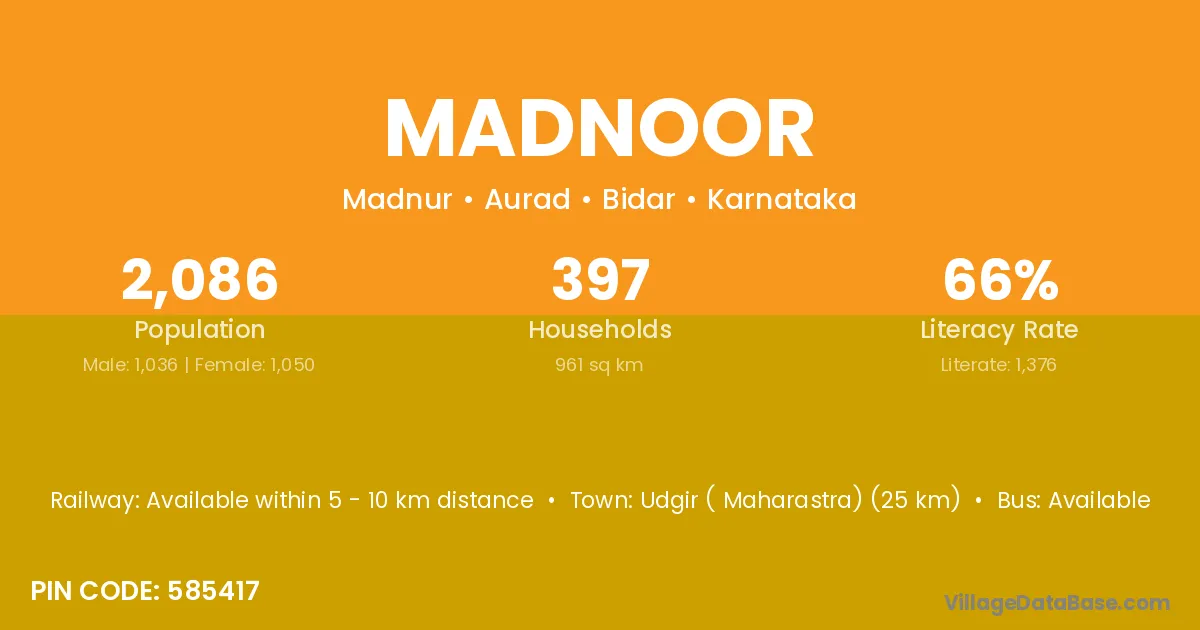 According to Census 2011 information, the village code of Madnoor village is 585417.