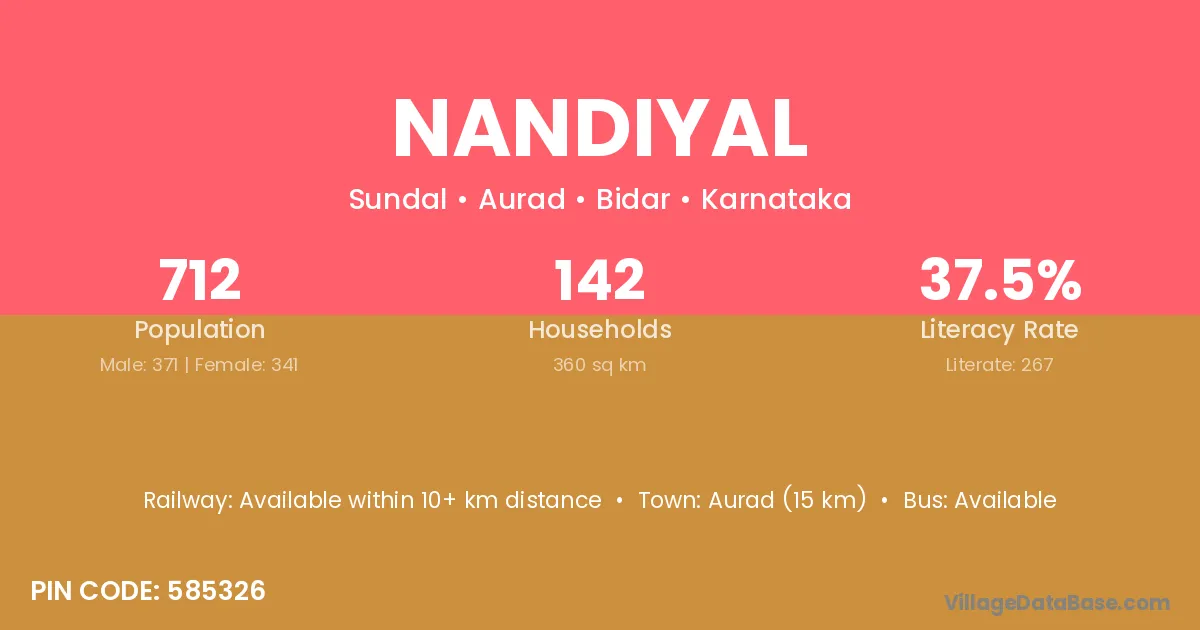 Aurad (15 km) is the nearest town to Nandiyal village for major economic activities and is located approximately 15 km away.