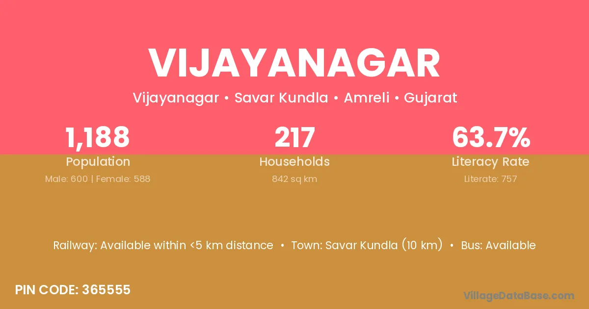The literacy rate of Vijayanagar village is 44.62%. Male literacy stands at 52.46% and female literacy at 36.06%.