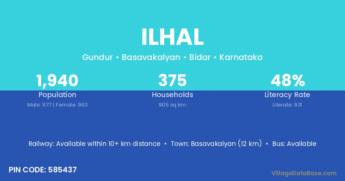 Basavakalyan (12 km) is the nearest town to Ilhal village for major economic activities and is located approximately 12 km away.