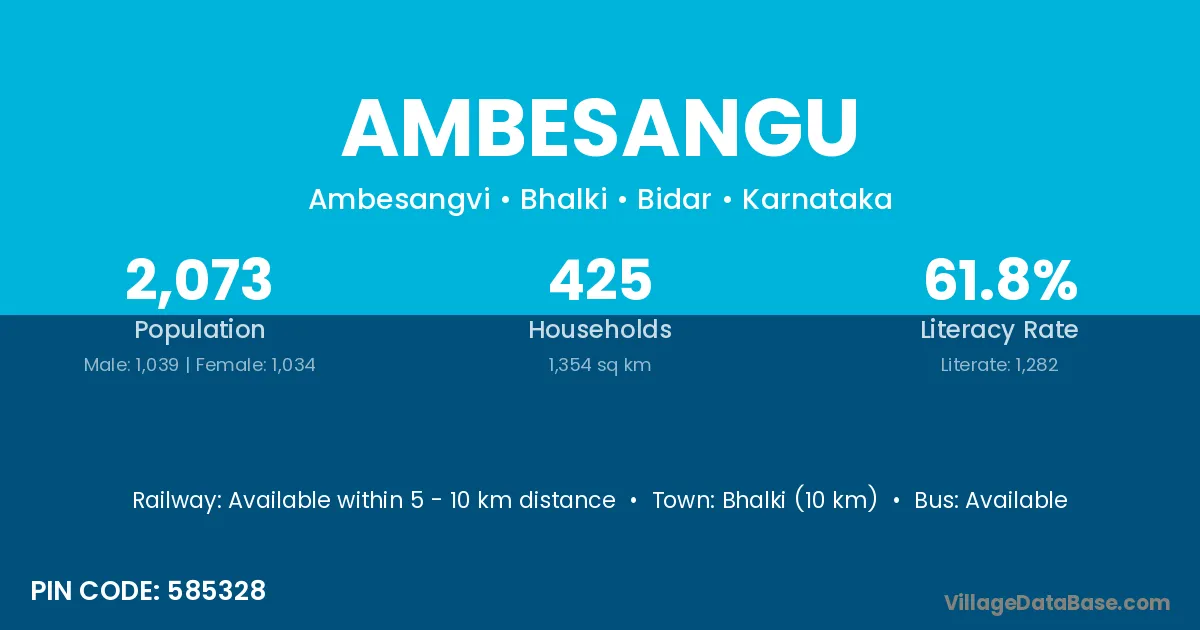 Bhalki (10 km) is the nearest town to Ambesangu village for major economic activities and is located approximately 10 km away.