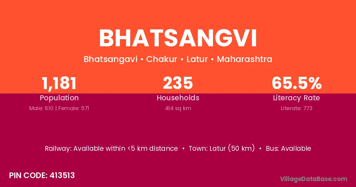 Bhalki (18 km) is the nearest town to Bhatsangvi village for major economic activities and is located approximately 18 km away.