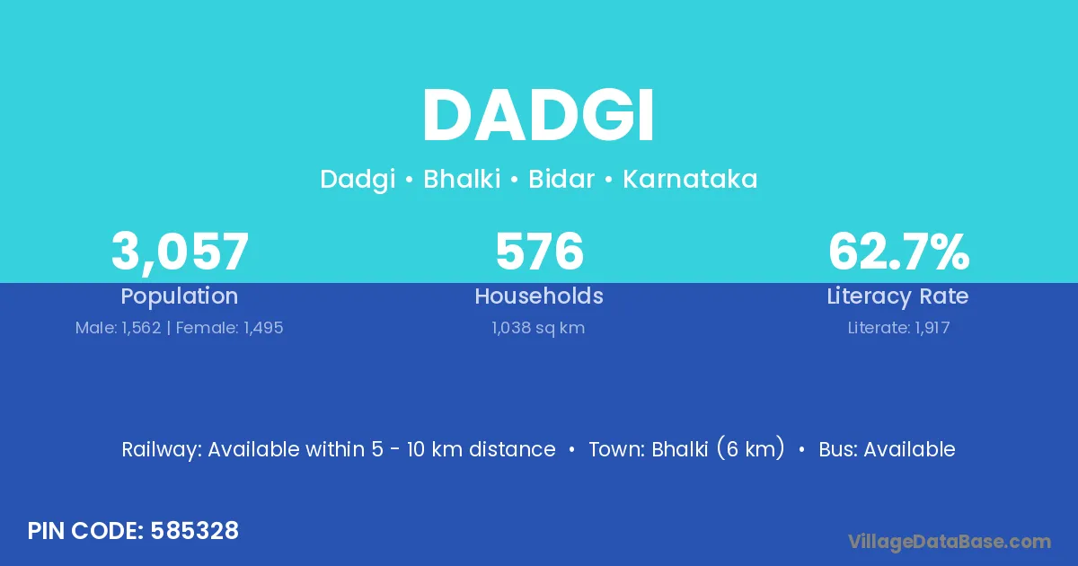 Bhalki (6 km) is the nearest town to Dadgi village for major economic activities and is located approximately 6 km away.