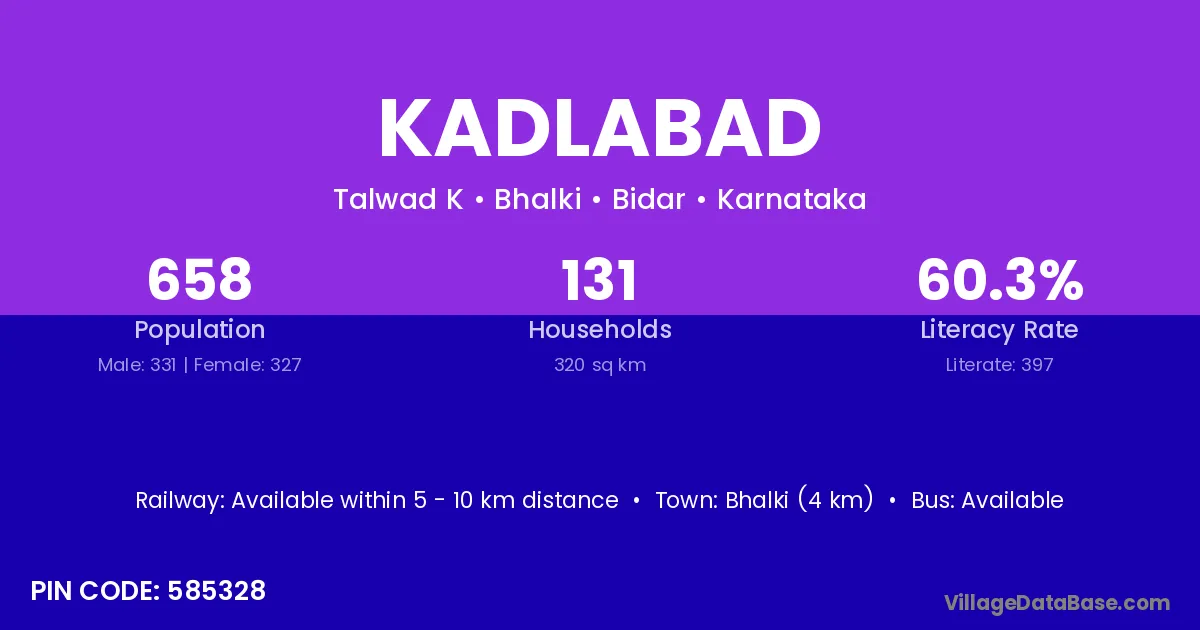 Bhalki (4 km) is the nearest town to Kadlabad village for major economic activities and is located approximately 4 km away.