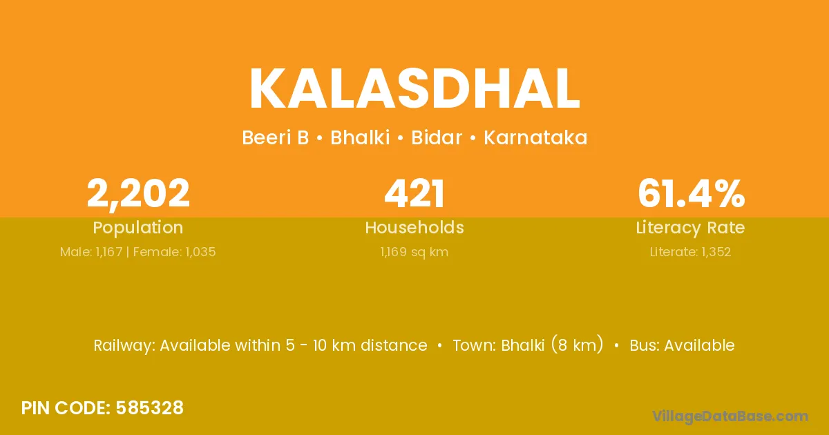 Bhalki (8 km) is the nearest town to Kalasdhal village for major economic activities and is located approximately 8 km away.