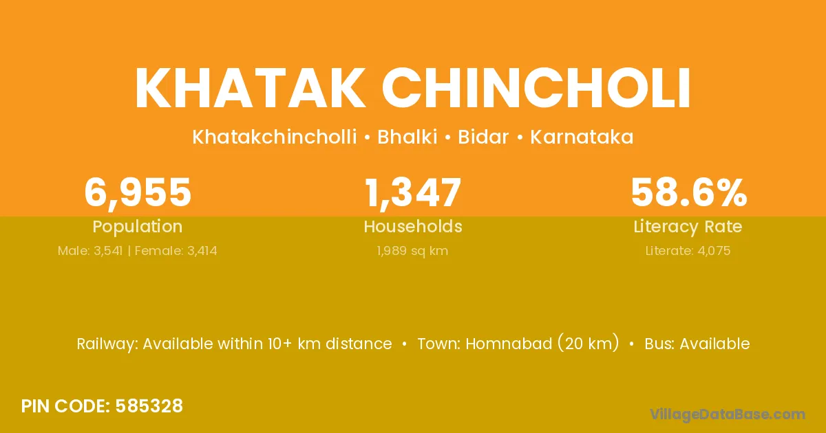 Homnabad (20 km) is the nearest town to Khatak Chincholi village for major economic activities and is located approximately 20 km away.
