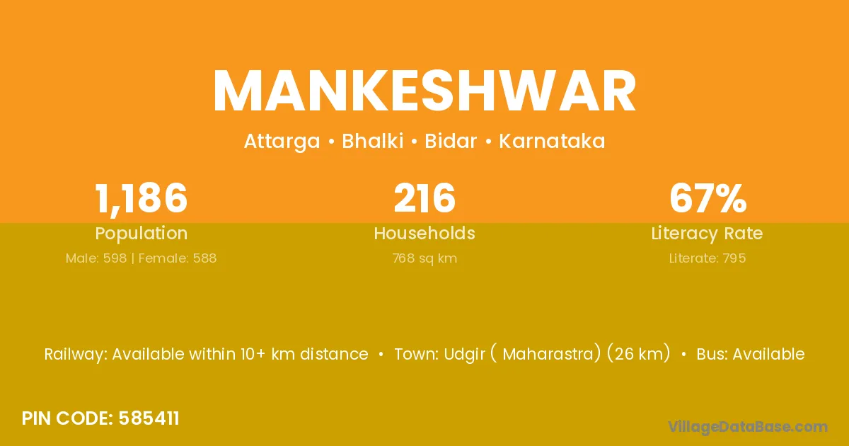 According to Census 2011 information, the village code of Mankeshwar village is 585411.