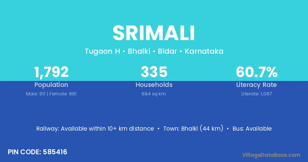 Bhalki (44 km) is the nearest town to Srimali village for major economic activities and is located approximately 44 km away.