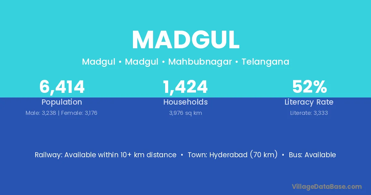 Chitgoppa (12 km) is the nearest town to Madgul village for major economic activities and is located approximately 12 km away.
