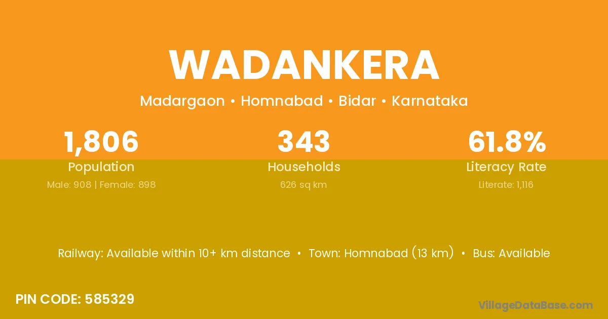 Homnabad (13 km) is the nearest town to Wadankera village for major economic activities and is located approximately 13 km away.