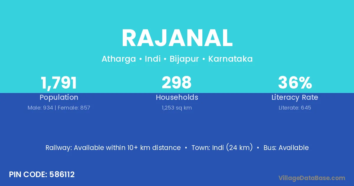 Basavana Bagevadi (21 km) is the nearest town to Rajanal village for major economic activities and is located approximately 21 km away.