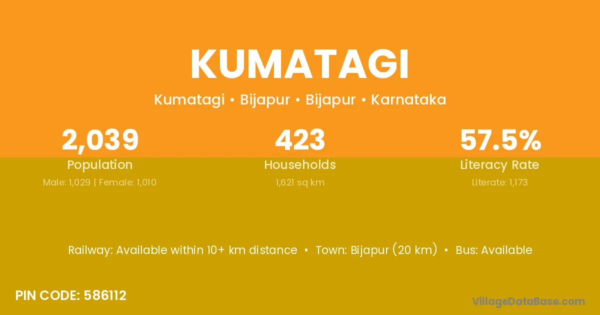 Bijapur (20 km) is the nearest town to Kumatagi village for major economic activities and is located approximately 20 km away.