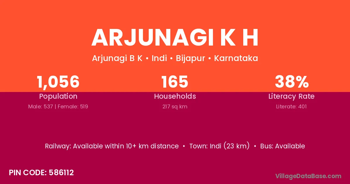Arjunagi K H village has a total population of 1,056 people, of which 537 are males and 519 are females.