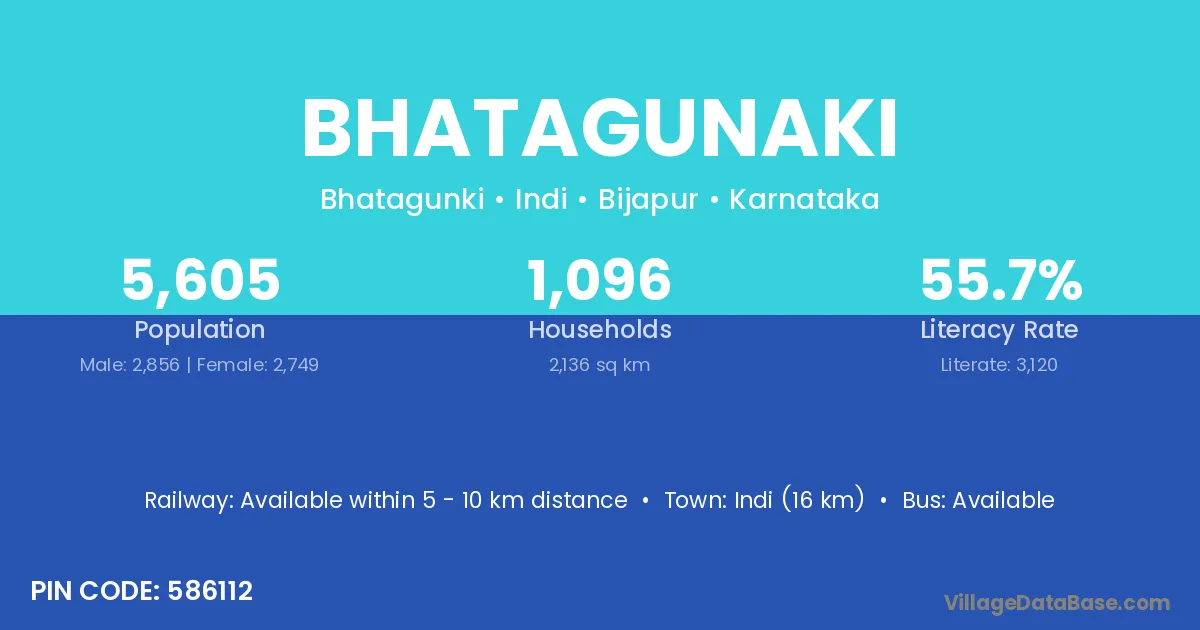 Indi (16 km) is the nearest town to Bhatagunaki village for major economic activities and is located approximately 16 km away.