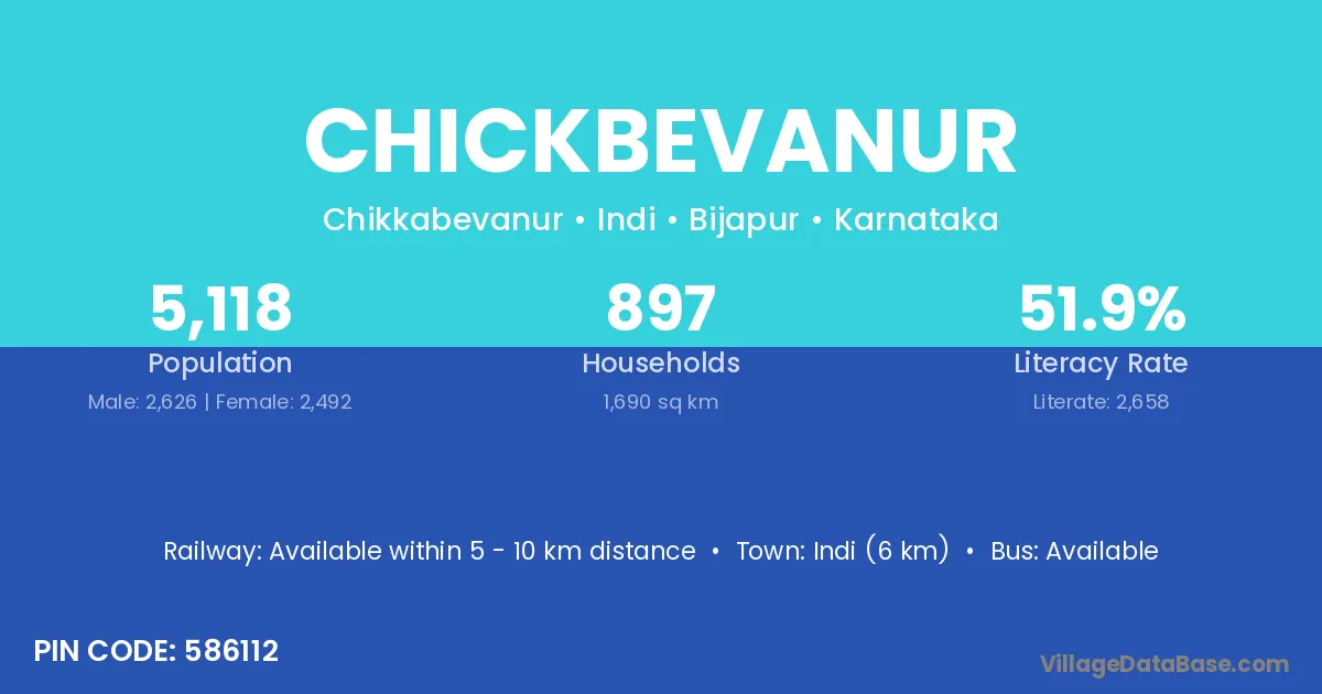 Indi (6 km) is the nearest town to Chickbevanur village for major economic activities and is located approximately 6 km away.