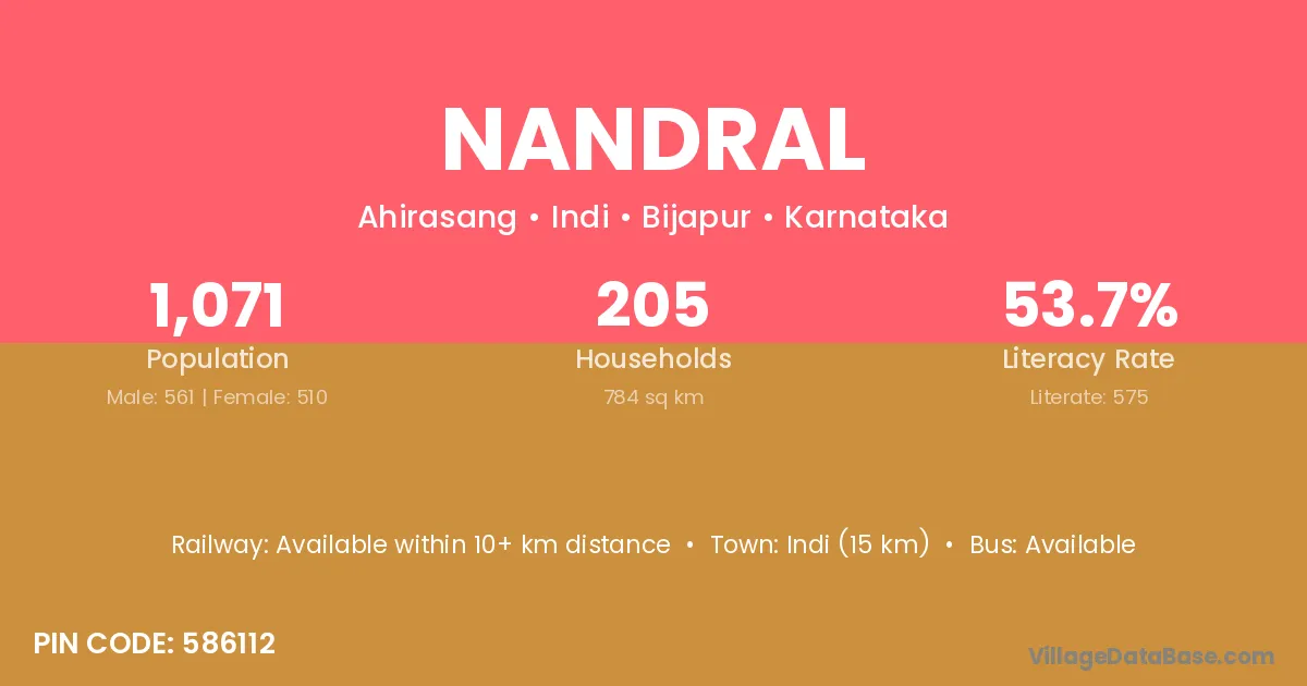 Indi (15 km) is the nearest town to Nandral village for major economic activities and is located approximately 15 km away.