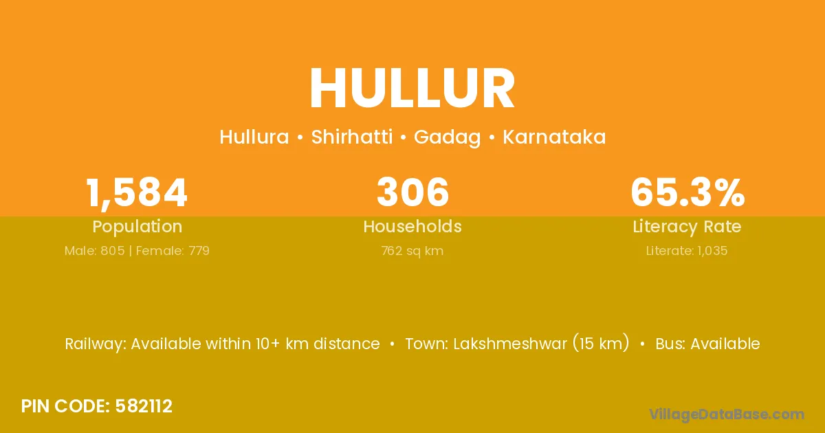 Muddebihal (10 km) is the nearest town to Hullur village for major economic activities and is located approximately 10 km away.