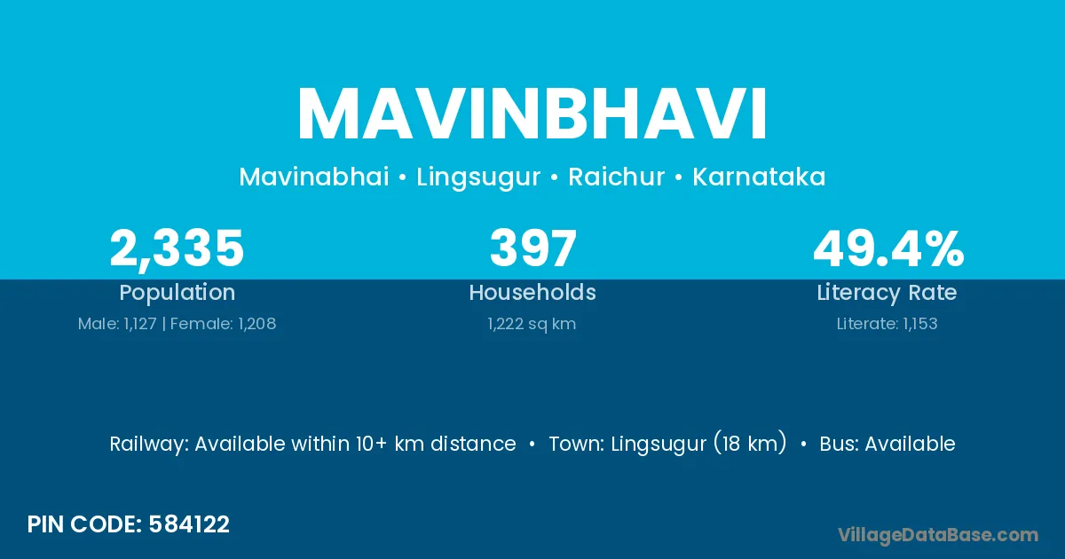 Muddebihal (17 km) is the nearest town to Mavinbhavi village for major economic activities and is located approximately 17 km away.