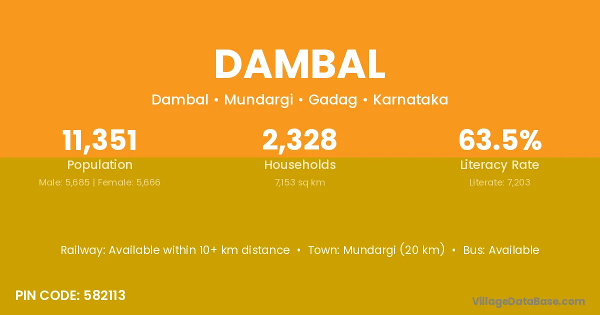 Sindgi (22 km) is the nearest town to Dambal village for major economic activities and is located approximately 22 km away.