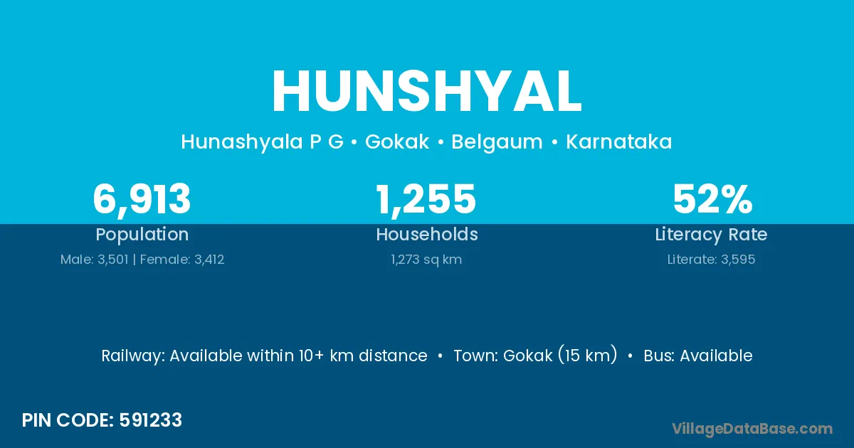 Talikota (30 km) is the nearest town to Hunshyal village for major economic activities and is located approximately 30 km away.