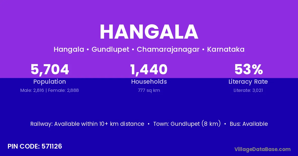Gundlupet (8 km) is the nearest town to Hangala village for major economic activities and is located approximately 8 km away.