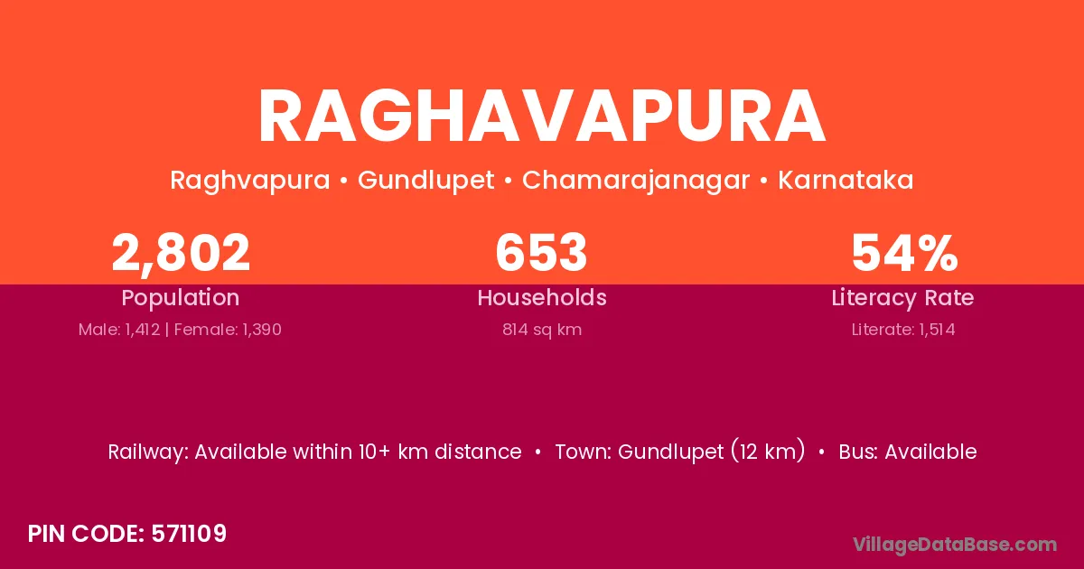 Gundlupet (12 km) is the nearest town to Raghavapura village for major economic activities and is located approximately 12 km away.