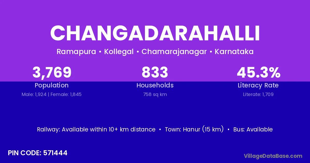 Hanur (15 km) is the nearest town to Changadarahalli village for major economic activities and is located approximately 15 km away.