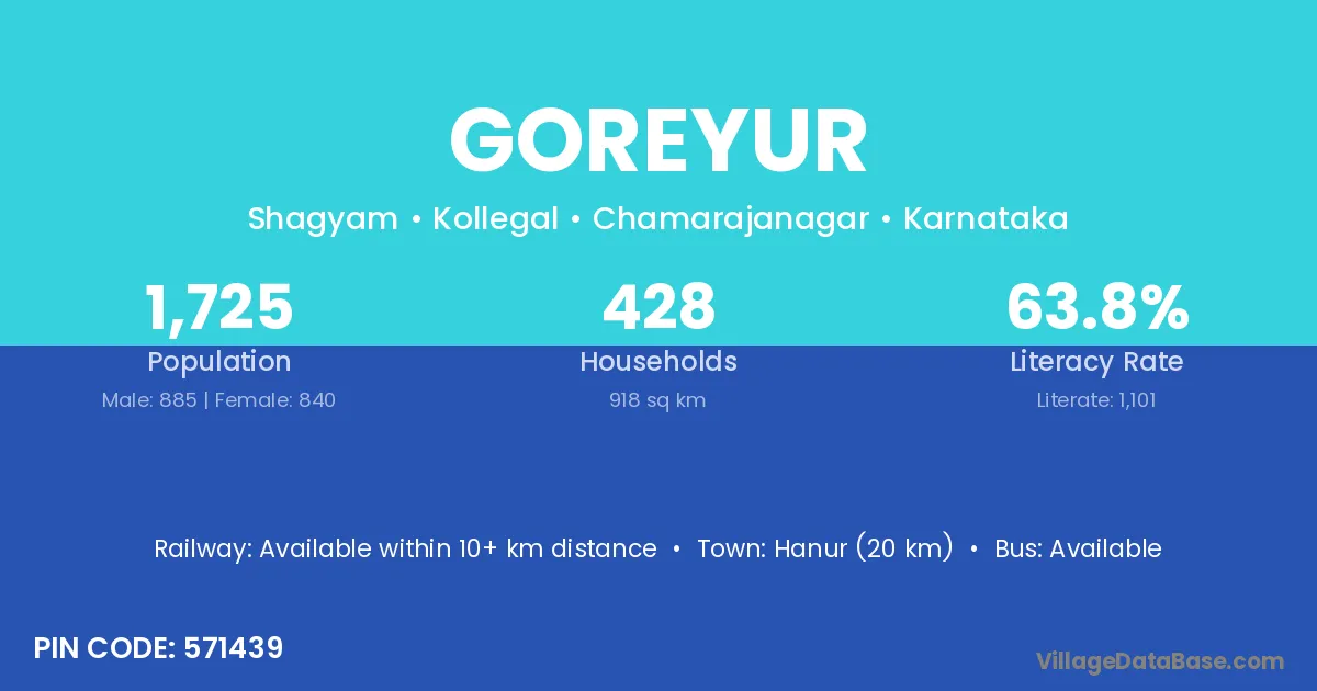 Hanur (20 km) is the nearest town to Goreyur village for major economic activities and is located approximately 20 km away.
