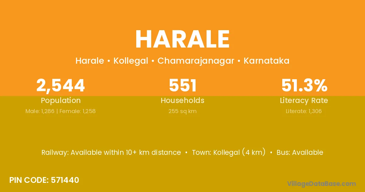 Kollegal (4 km) is the nearest town to Harale village for major economic activities and is located approximately 4 km away.