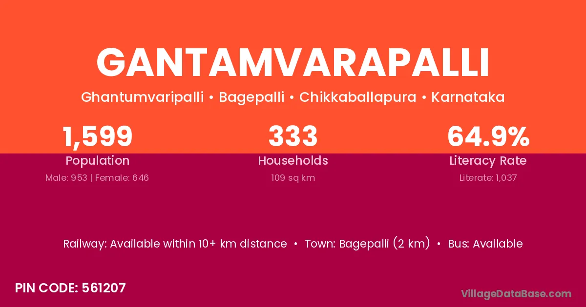 Bagepalli (2 km) is the nearest town to Gantamvarapalli village for major economic activities and is located approximately 2 km away.