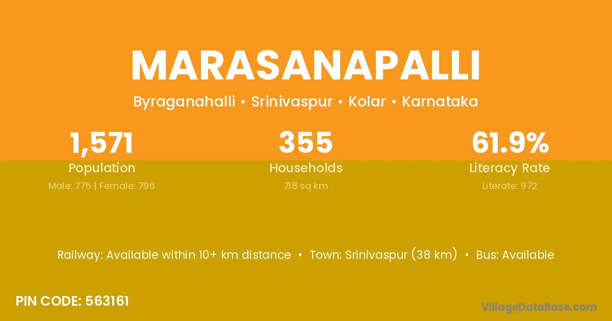 Bagepalli (15 km) is the nearest town to Marasanapalli village for major economic activities and is located approximately 15 km away.