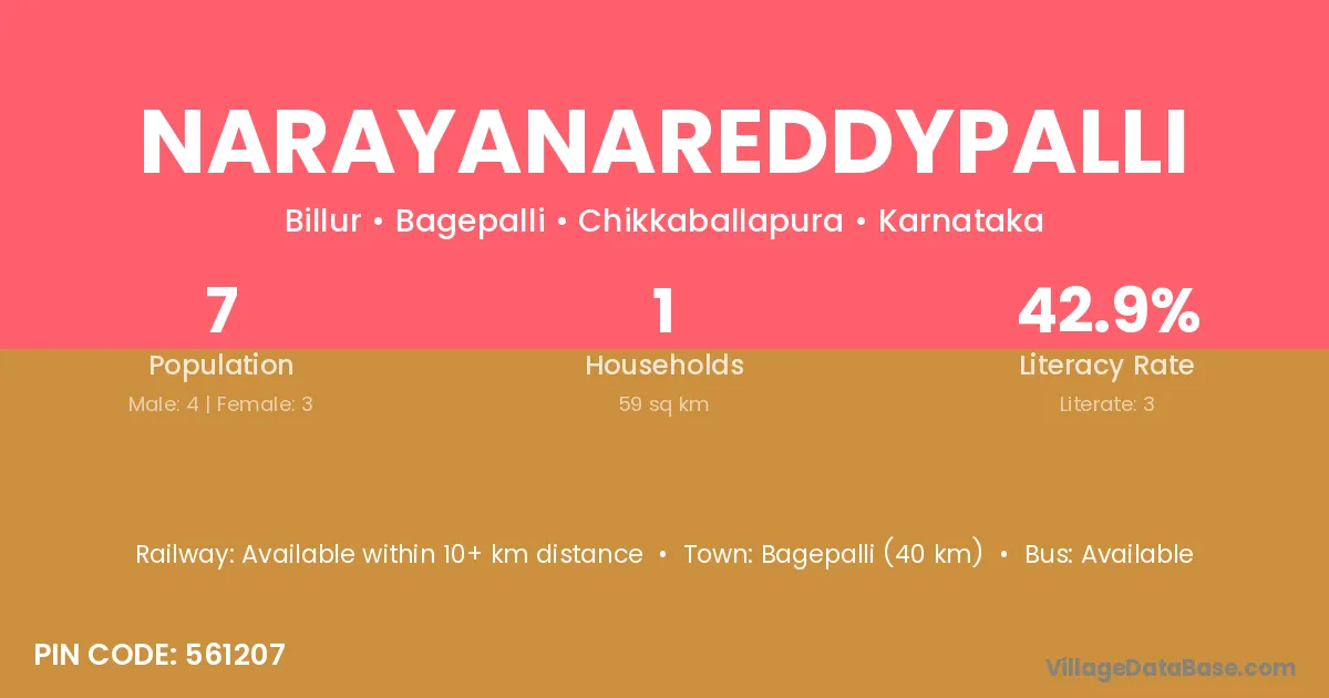 According to Census 2011 information, the village code of Narayanareddypalli village is 561207.