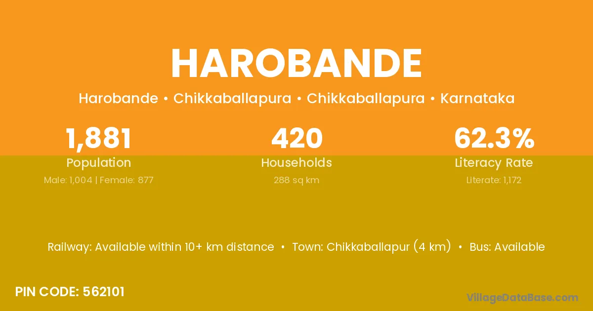 Chikkaballapur (4 km) is the nearest town to Harobande village for major economic activities and is located approximately 4 km away.