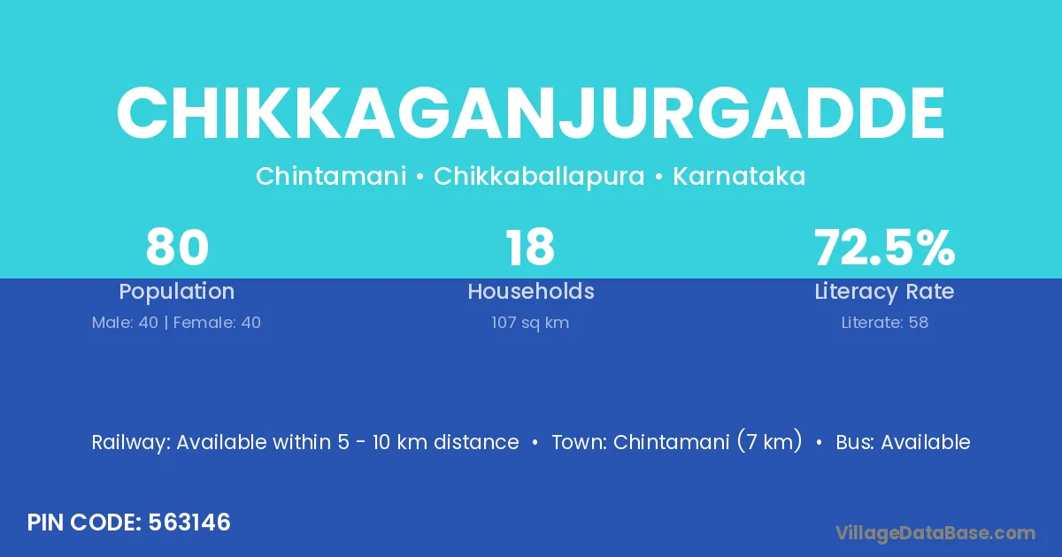 Chintamani (7 km) is the nearest town to Chikkaganjurgadde village for major economic activities and is located approximately 7 km away.