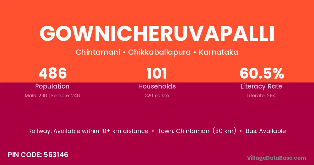 Gownicheruvapalli village has a total population of 486 people, of which 238 are males and 248 are females.