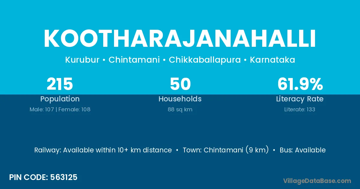 Kootharajanahalli village has a total population of 215 people, of which 107 are males and 108 are females.