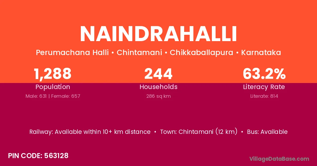 Chintamani (12 km) is the nearest town to Naindrahalli village for major economic activities and is located approximately 12 km away.