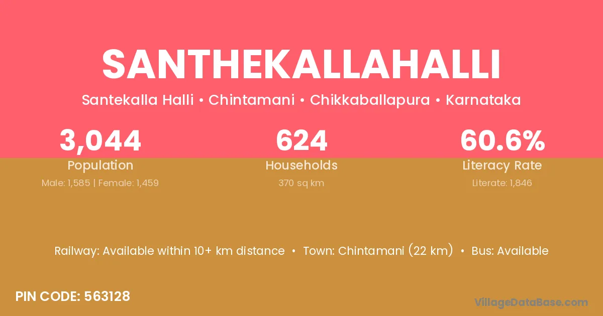 Chintamani (22 km) is the nearest town to Santhekallahalli village for major economic activities and is located approximately 22 km away.